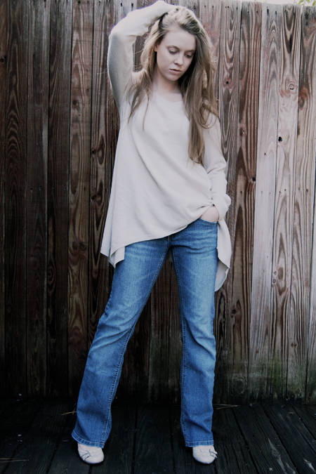 I love that your shirt is so loose and relaxed. Your shoes are cute, too.